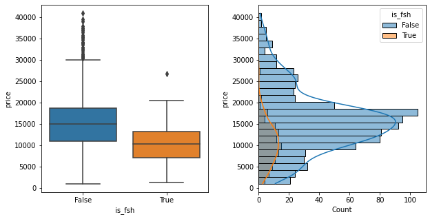 …On closer inspection fsh only tended to be mentioned on older cars. So filtering the data down to those over 10 years old showed that the presence of “fsh” in the advert did tend to correlate with higher prices, but only on older cars.