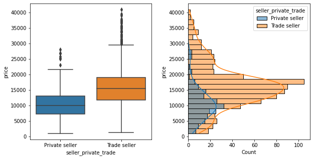 Privately sold cars were generally lower value than from trade sellers… however privately sold cars were also typically older and higher mileage than from trade sellers. So there’s some feature interactions behind this which aren’t apparent from just looking at this one feature. 2nd row of plots provided below to show the distribution of age/mileage whether “private” or “trade” seller.